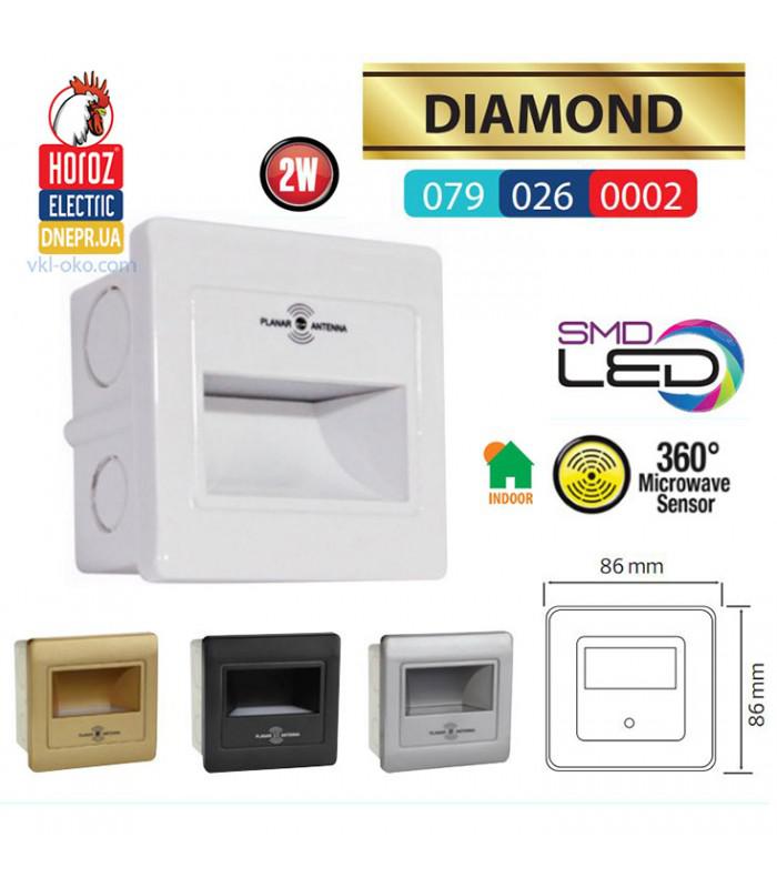 svetilnik lestnichnyj led diamond 2w s datchikom dvizheniya horoz electric