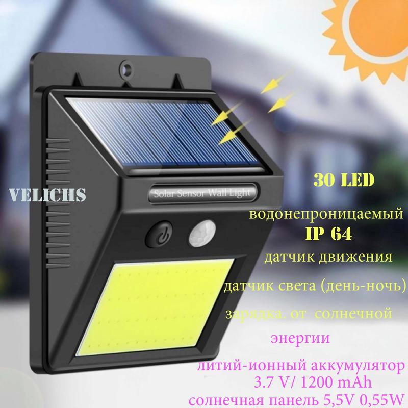 svetilnik svetodiodnyj nastennyj na solnechnoj bataree s datchikom dvizheniya i osveshennosti fotorele 32 led lamper