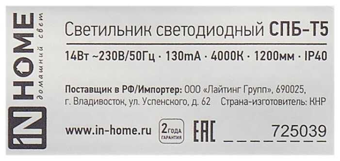 svetilnik svetodiodnyj spb t5 14vt 6500k 230v 1260lm ip40 1200mm in home